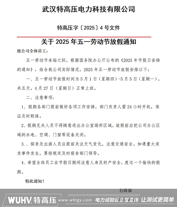 武漢特高壓2025年五一勞動(dòng)節(jié)放假通知!