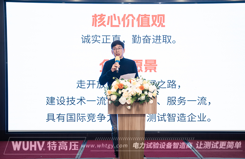 董事長與大家一同重溫企業愿景,再次叮囑全體員工,錨定“走開放式科技發展之路,建設技術、質量、服務一流,具有國際競爭力的電力測試智造企業”的目標,后續還分享了服務理念、工作原則等企業核心文化,勉勵全體特高壓人堅守核心價值觀、立足本職崗位,凝心聚力、奮勇爭先,以策馬揚鞭的奮進姿態,共同書寫武漢特高壓2026年的新輝煌。