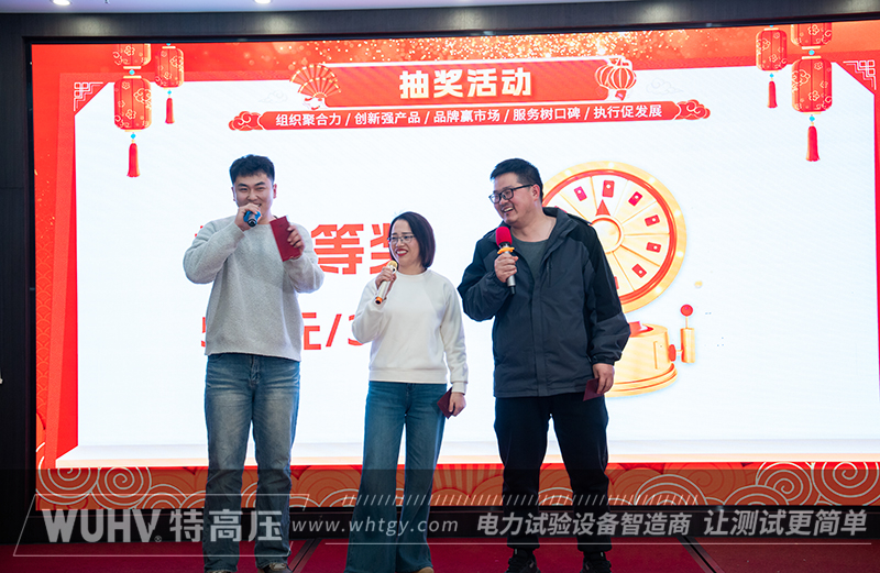 年會抽獎環節全程高能,一次次將現場氣氛推向高潮。從三等獎到一等獎,再到萬眾期待的特等獎,每一次獎項揭曉都扣人心弦,其中抽取二等獎時,副總經理為大家準備互動環節,親自上臺與全體員工熱情互動,歡聲笑語間將現場氛圍推向新的高潮。幸運獲獎者登臺領獎,臉上滿是驚喜與激動。這既是幸運的饋贈,更是公司對員工全年付出的感恩與馬年祝福,現場獎品充足,大部分伙伴都抽到了專屬馬年禮物!