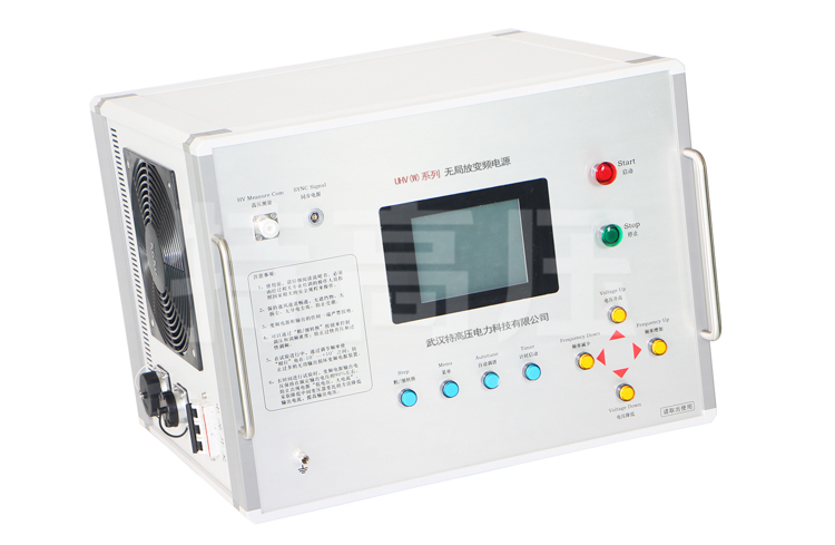 無局放變頻電源可用于所有電氣設備的交流耐壓試驗和局部放電試驗。利用勵磁變壓器激發串聯或并聯諧振回路,通過調節變頻電源的輸出頻率,使得回路中的電抗器電感 L 和試品電容 C 發生諧振,諧振電壓即為試品上所加電壓。或通過中間變壓器直接輸出至變壓器初級進行感應耐壓試驗。