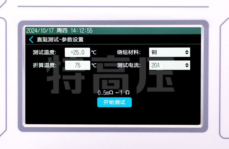 - 1、測試電源最高輸出電流 20A,測試范圍 0~25kΩ,滿足絕大多數變壓器的測試需求。