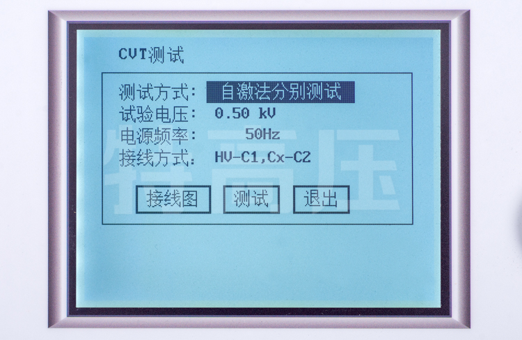 - 1、具備CVT的自激法測試,一次接線,同時測量 C1、C2的電容和tgδ