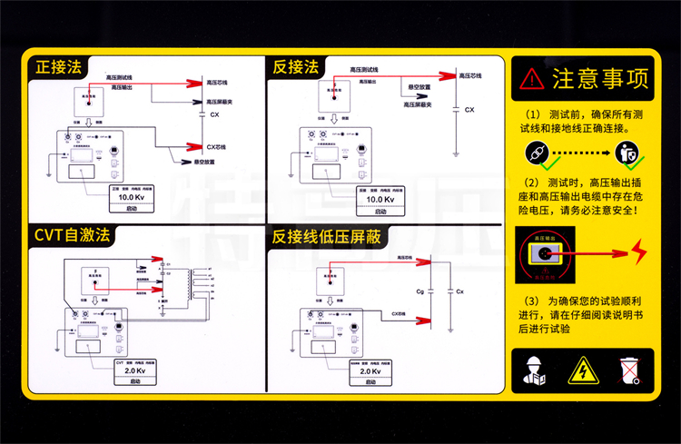 • 19、具有反接線低壓屏蔽功能,在220kVCVT母線接地情況下,對C11可進行不拆線10kV反接線介損測量,并且可一次接線同時對主、從兩個電容進行測量。