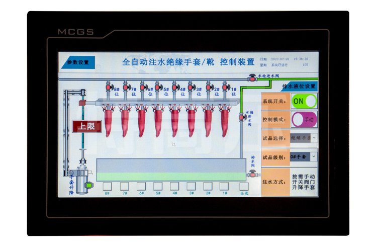 - 4、注水裝置采用先進的PLC控制,可以實現一鍵注水,試品位置檢測、手套內水位檢測、水槽的水位檢測、自動復位等多項功能,確定試驗的準確性、安全性、使試驗設備的使用、維護更便捷。