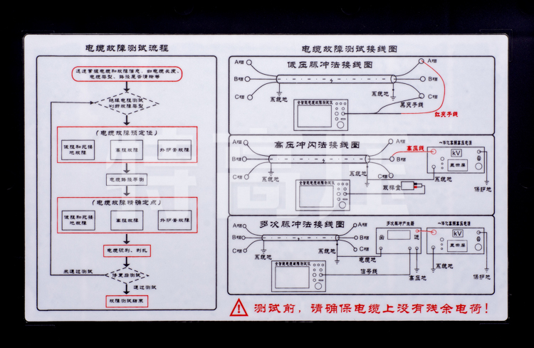 - 5、獨特的多次脈沖法產生器設計,一次放電,可得十次低壓短路脈沖波形,大大降低了大振蕩的干擾,多次脈沖產生器體積小,重量僅為5kg,真正實現全套設備輕便化。