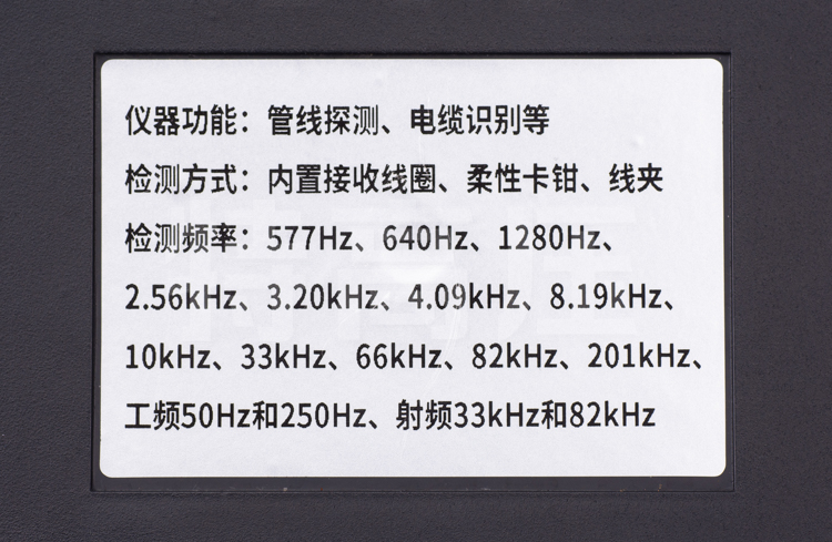 | 接收頻率 | 主動探測頻率:577Hz、640Hz、1280Hz、2.56kHz、3.20kHz、4.09kHz、8.19kHz、10kHz、33kHz、66kHz、82kHz、201kHz |