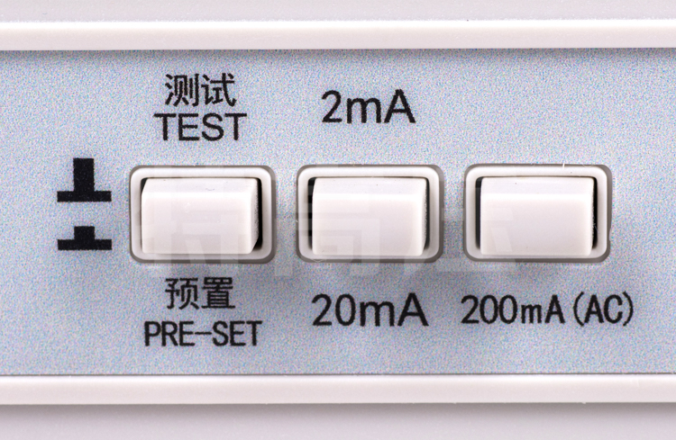 - 4、可任意預(yù)置報(bào)警電流值,當(dāng)漏電流超預(yù)置報(bào)警電流值時(shí),儀器將出現(xiàn)聲光報(bào)警,提醒使用者記錄測試結(jié)果。