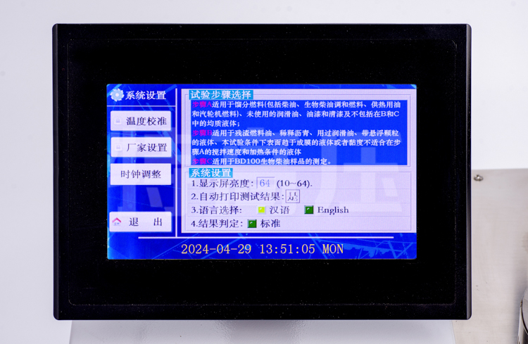 - 2、全自動閉口閃點測試儀采用800×600點大屏幕彩色觸摸屏液晶顯示器,熱敏性打印機,中英文顯示界面,操作方法簡單。