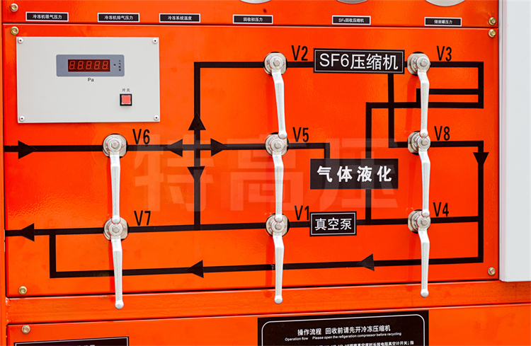 本裝置由 SF6 氣體回收裝置組成。涉及的產品的主要優點為能直接將回收的SF6 氣體以液態的形式貯存入容器,并能將 GIS 內的殘壓回收至53Kpa(絕壓),擁有較小的體積,便于移動的放置,擁有較快的抽真空速度,能對回收的SF6氣體進行干燥和過濾,還能回充 SF6 氣體至 SF6 電氣設備。