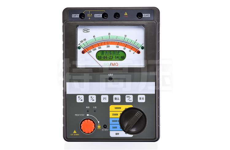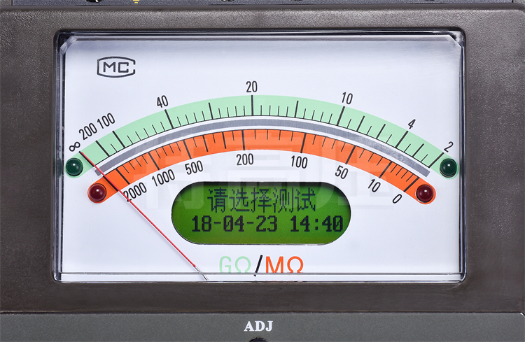 - 2、兩種方式同步顯示絕緣阻值。機械指針采用超薄型張絲結構抗震能力強。機械指針的采用可容易觀察絕緣電阻的變化范圍,點陣液晶屏的采用可指導用戶操作儀表并可精確得出測量結果。
