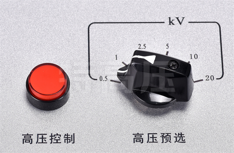 - 4、高壓輸出范圍寬廣:可選擇0.5kV、1kV、2.5kV、5kV、10kV、15kV,也可從0V平滑調節到需要的電壓。