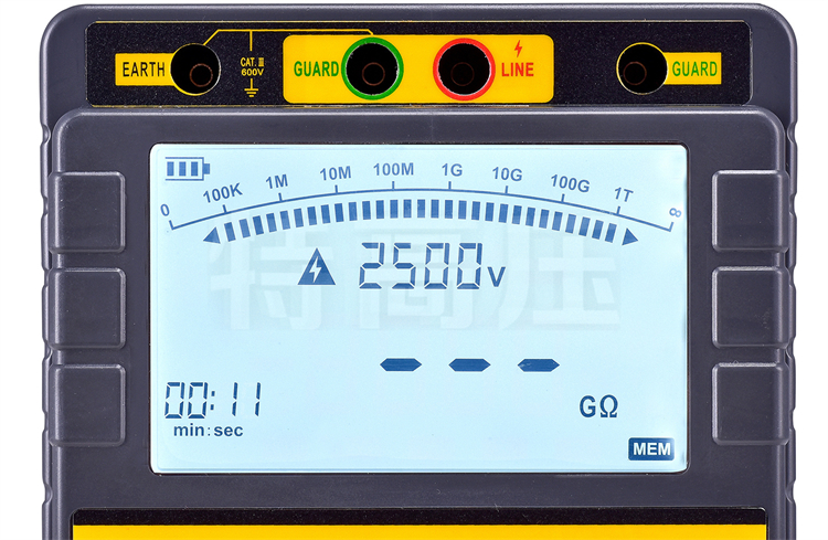 - 2、兩種方式同步顯示絕緣阻值。模擬指針的采用可容易觀察絕緣電 阻的變化范圍,數字顯示的采用可精確得出測量結果。