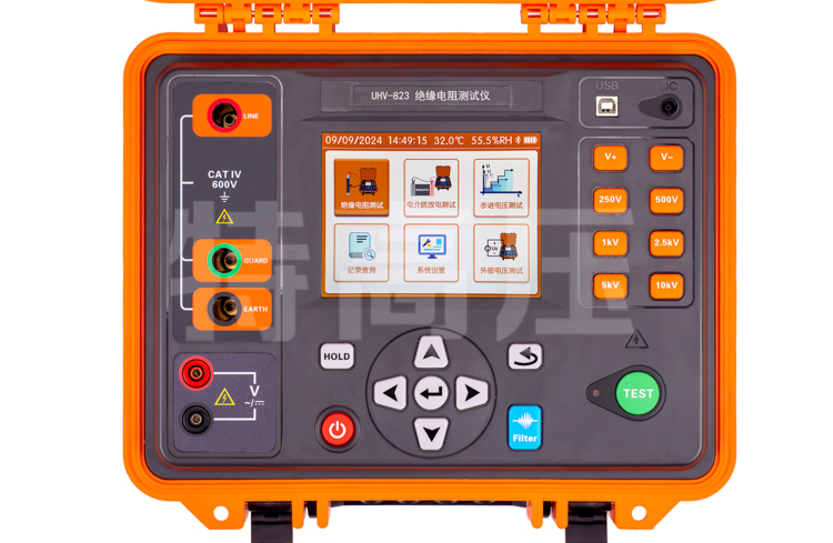 絕緣電阻測試儀,又名高壓絕緣電阻測試儀、兆歐表、高壓兆歐表、數字式高壓兆歐表等,此外兼顧電介質放電測試、外部電壓測試、步進電壓測試,多種測試模式適用于多種應用場景。本儀表采用箱式設計,箱體及面板采用塑料模具注塑成型,確保高絕緣性,5.6 寸彩色 LCD 屏,簡潔的按鍵設計讓用戶輕松掌握儀器的使用,同時還具有數據存儲、查閱、保持、傳輸等功能。