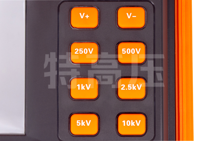 | 試驗電壓 | 設定范圍:250V、500V、1000V、2500V、5000V、 10kV | ||