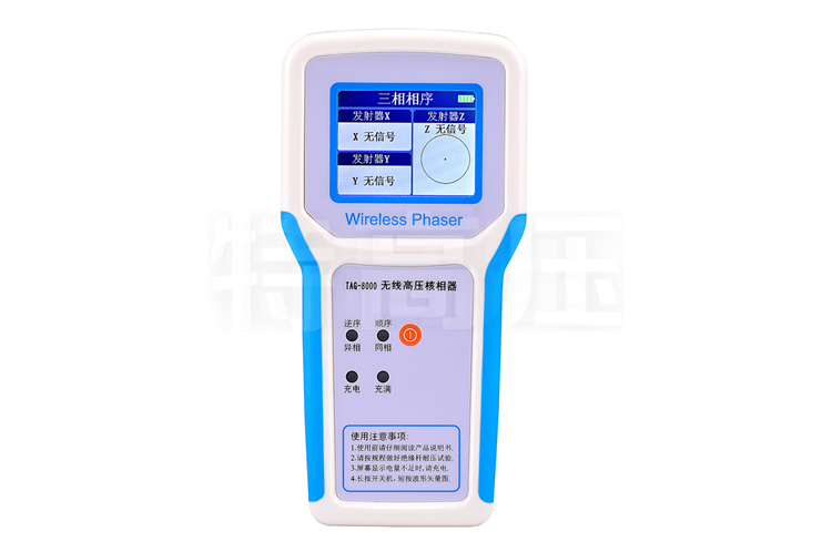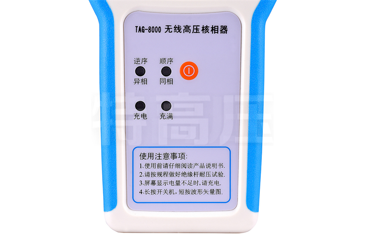TAG-8000 無線高壓核相儀(以下簡稱“儀器”)用于兩條高壓線路并網或環網核相。儀器適合0.22~220kV交流輸電線路帶電作業和二次側帶電作業,具有高壓驗電功能。
